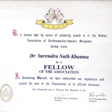 Fellow, Indian Association of Cardiovascular & Thoracic Surgeons FIACS 2001.