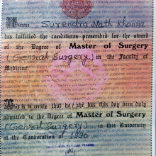 Master of Surgery (M.S), General Surgery, King’s Medical College,Lucknow,India,1990.